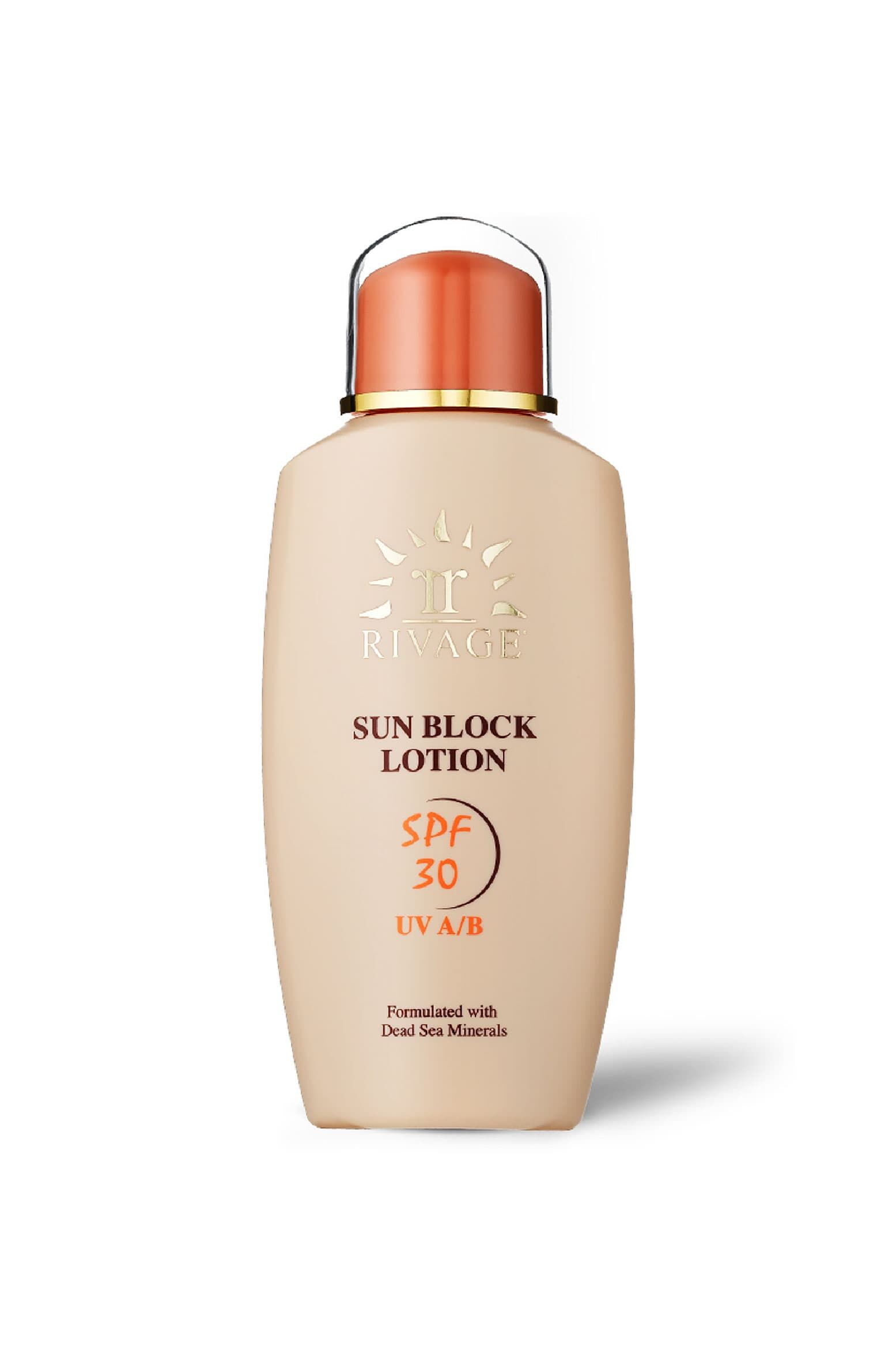 RIVAGE Sun Block Lotion contains a unique blend of natural Dead Sea Minerals,Vitamin E and natural Zinc Oxide,to provide a broad spectrum of coverage and protection against UV-B and UV-A sun exposure.This formula has an active mix of sun filters to protect against sunburn and other physiological effects of sun damage to the skin.
